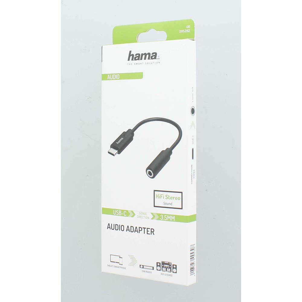 Hama Adapter Audio USB-C till 3,5 mm stereo. Enastående ljudkvalitet tack vare högkvalitativ digital/analog omvandlare (DAC)