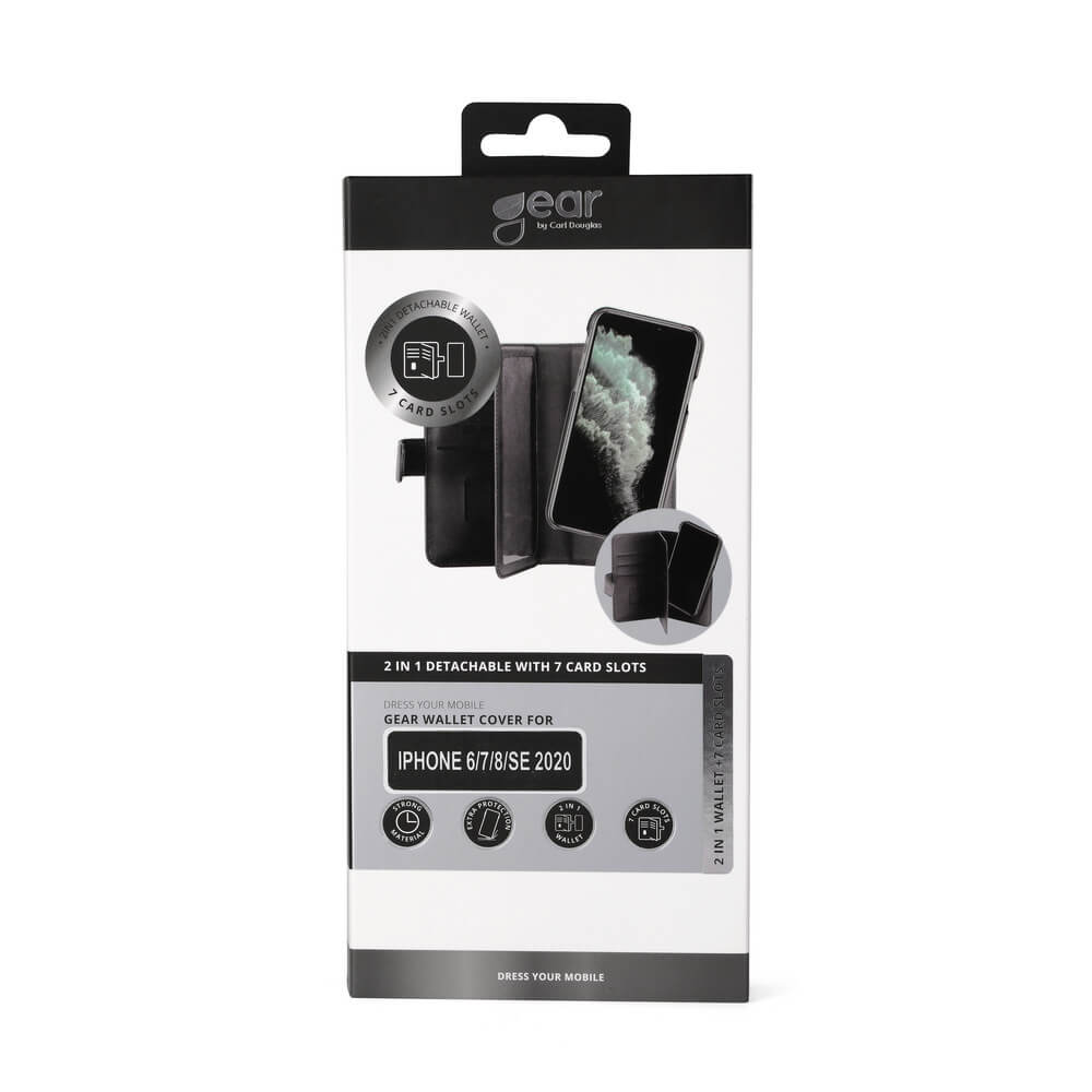 Plånboksfodral GEAR iPhone 6/7/8/SE, 2-in-1 magnetskal, 7 kortfack - Svart