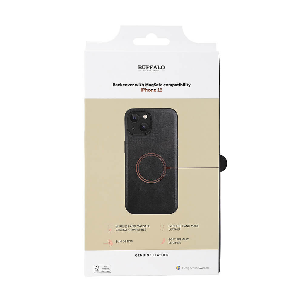 Skal BUFFALO Backcover Leather MagSeries iPhone 15 - Svart