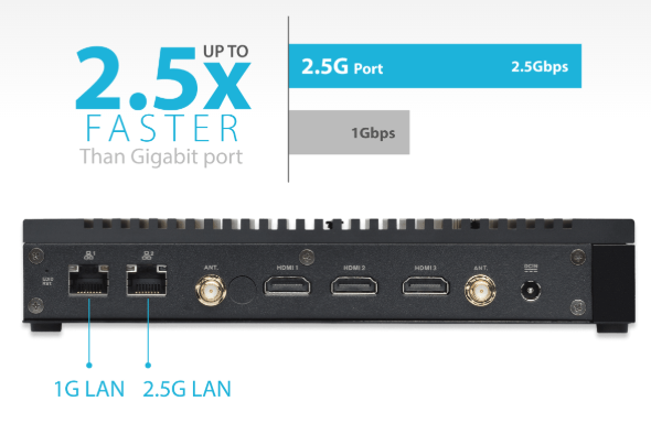 • Comprehensive I/O ports including dual COM, dual LAN with 1x 2.5G and up to five USB ports