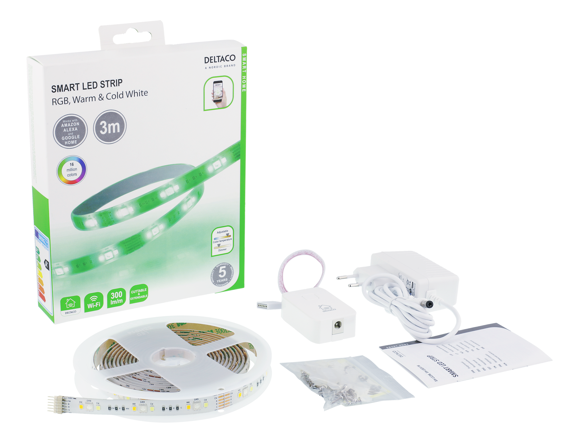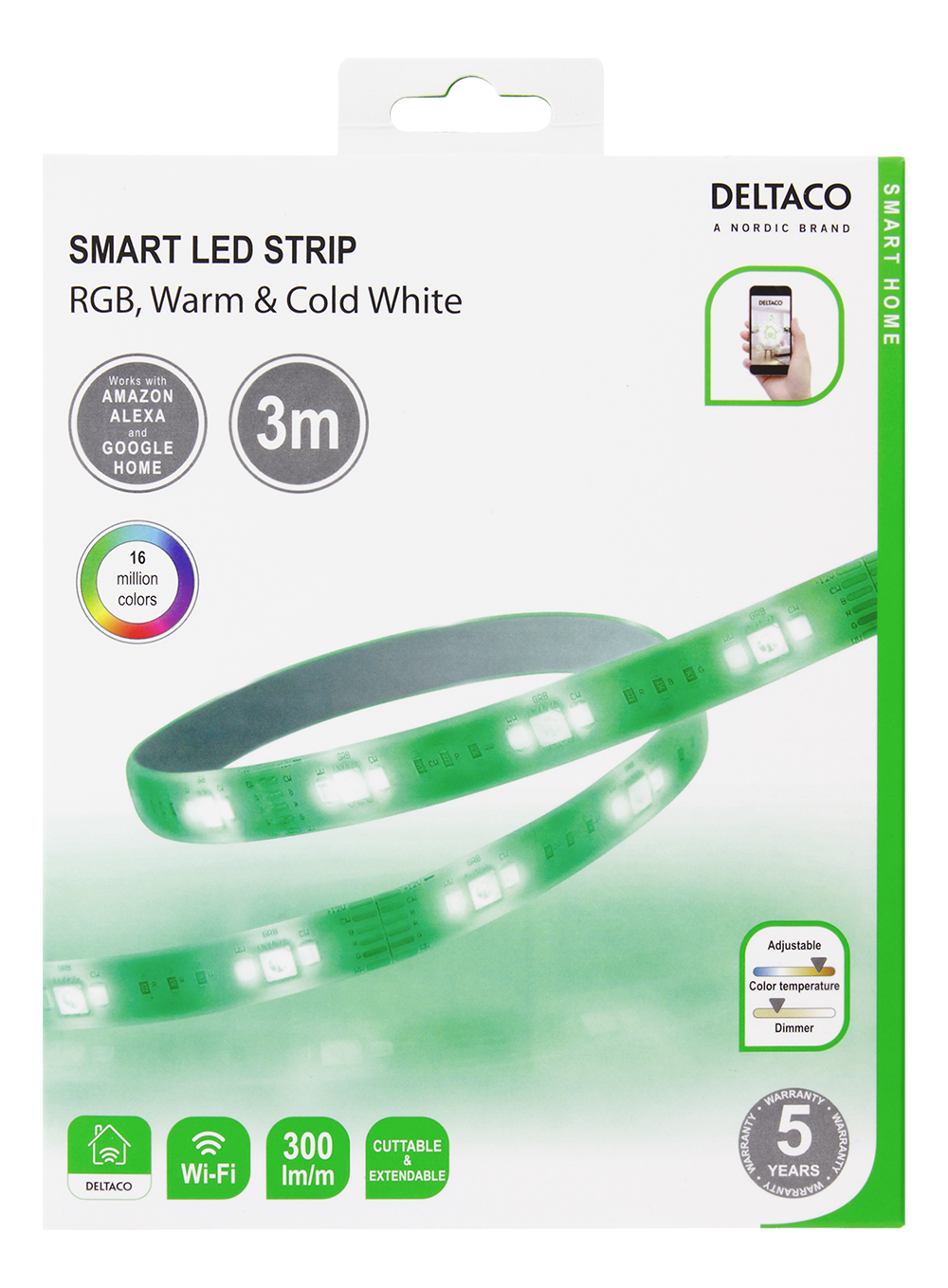LED-list Deltaco Smart Home, RGB, 2700K-6500K, 3m, WiFi 2,4GHz - Vit