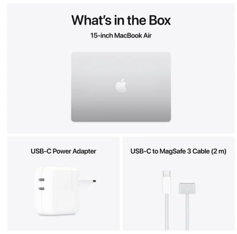 Apple MacBook Air 15.3 tum, Apple M4 10-core CPU 10-core GPU, 16 GB, 256 GB SSD - Silver