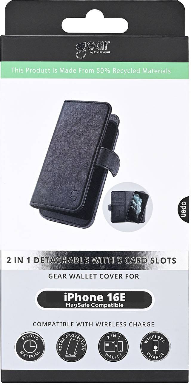 Plånboksfodral GEAR 2in1 3 card Recycled MagSeries iPhone 16e/17e - Svart