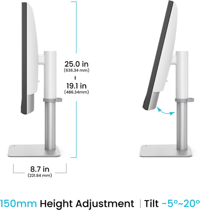 | Höjd (med stativ) | 636,3 mm |
