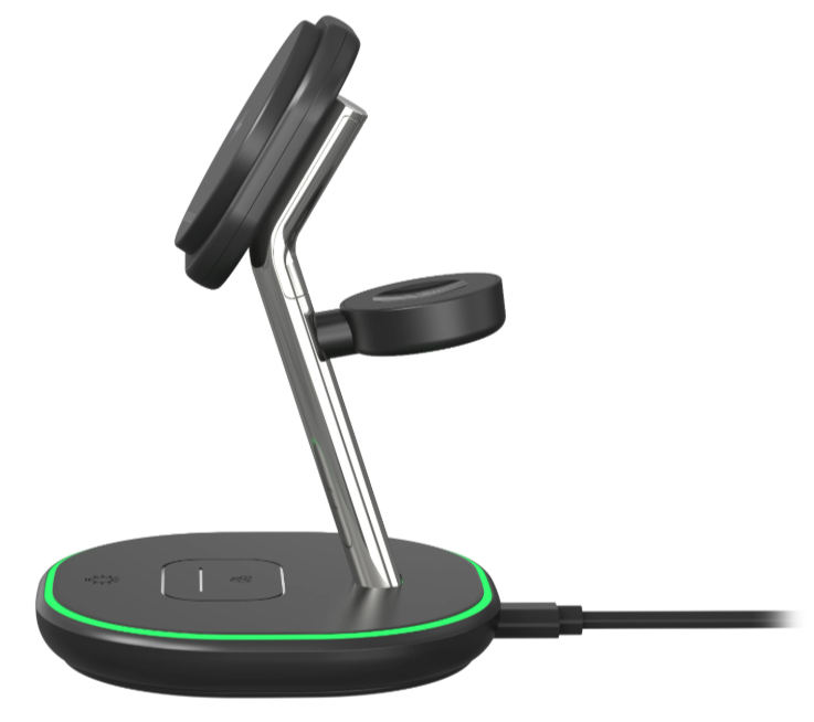 This magnetic wireless charger is an all-in-one solution for your charging needs. The charger is designed to fit perfectly with your mobile phone, TWS headsets, and Apple Watch.