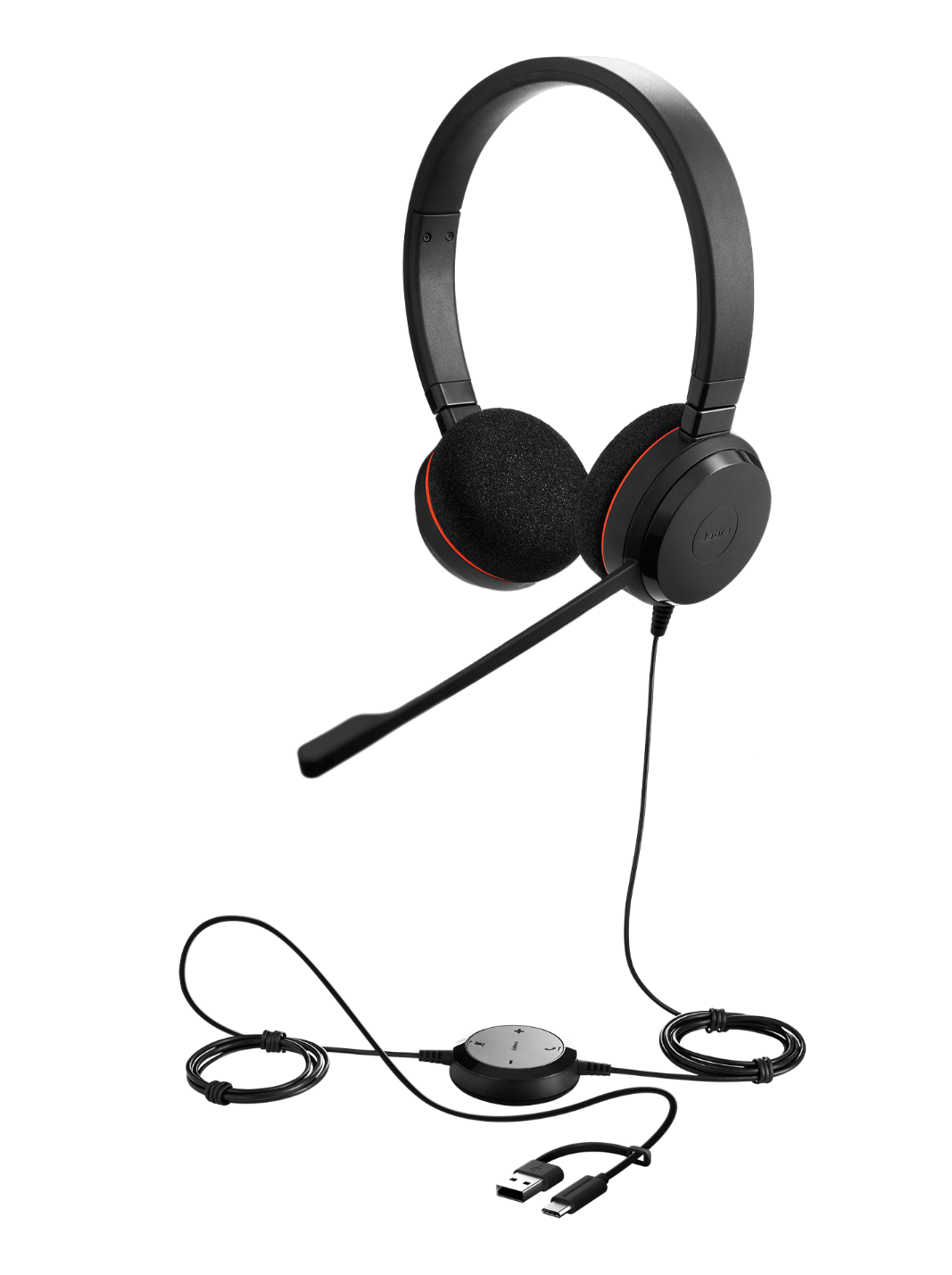 Headset On-ear kabelanslutet Jabra Evolve 20 stereo UC volymkontroll/mute USB-A/USB-C svart/röd