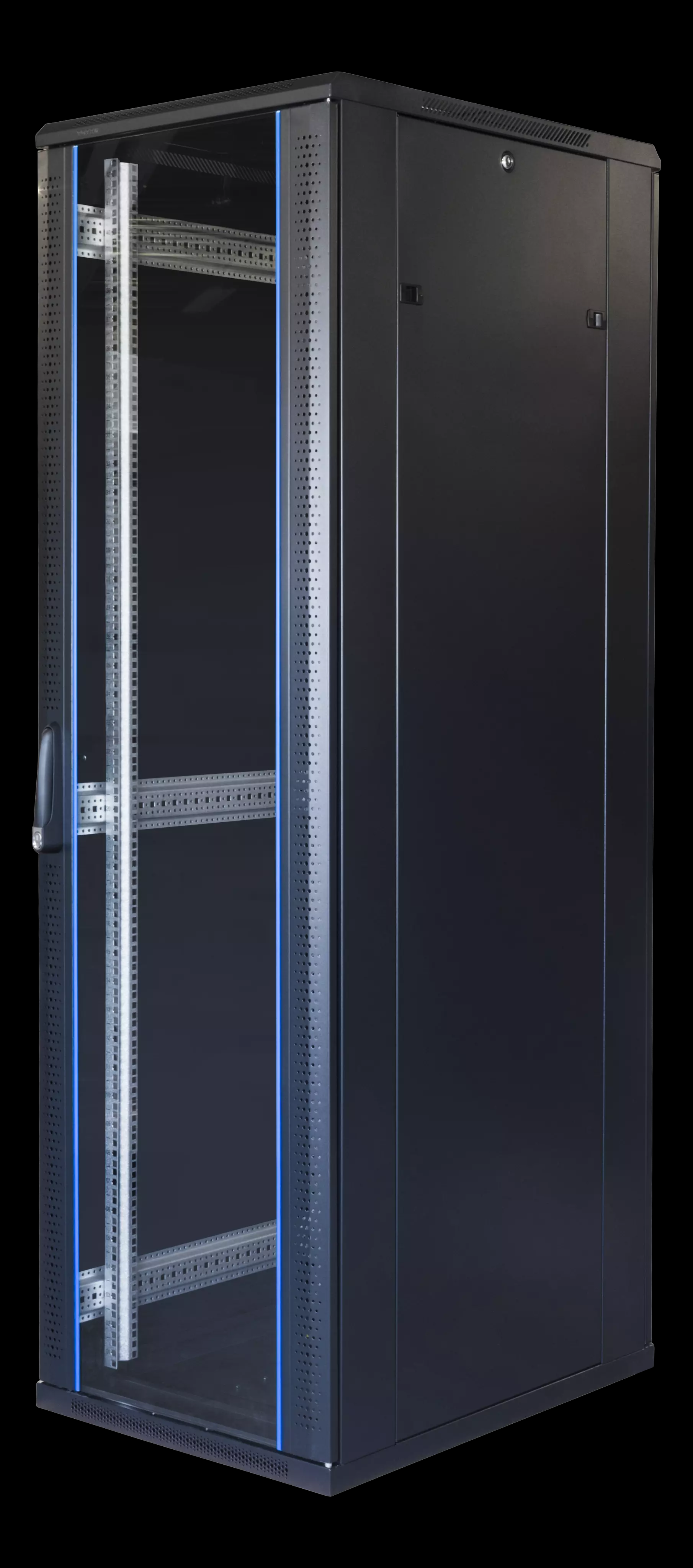 19"-enheterna monteras på fyra kolumner av en patenterad zinklegering. Ett material som hjälper till att motverka elektrostatisk skada, är mycket hållfast för upprepade installationer och har en smutsskyddad ytstruktur. Kolumnerna är justerbara fram- och bakledes i steg om 25 millimeter. De har dessutom väl tilltagna hål för kabelgenomföring och en tydlig Unit-markering som syns även när enheterna är monterade.I taket finns plats för TOTENs modulära fläktsystem med praktiskt montering från utsidan och ger en valbar kylkapacitetI botten finns stegvist öppningsbar kabelgenomföring för upp till 1000 nätverkskablar samt separata hål för strömkablar.Alla skåp har högerhängda fram- och bakdörrar med lås samt löstagbara och låsbara sidopaneler.Skåpet levereras hopmonterat med fötter och är klart för användning på fem minuter.Hjul, korgmuttrar med skruv, nycklar och monteringsverktyg medföljer.Öppna alltid emballaget och kontrollera att skåpet är intakt innan ni skriver på fraktsedeln. Eventuella fraktskador måste noteras/dokumenteras och reklameras till speditören av mottagaren omgående.