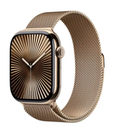 Apple Watch Series 10 GPS + Cellular 46mm Guld Titanboett med Guld Milaneseloop - M/L