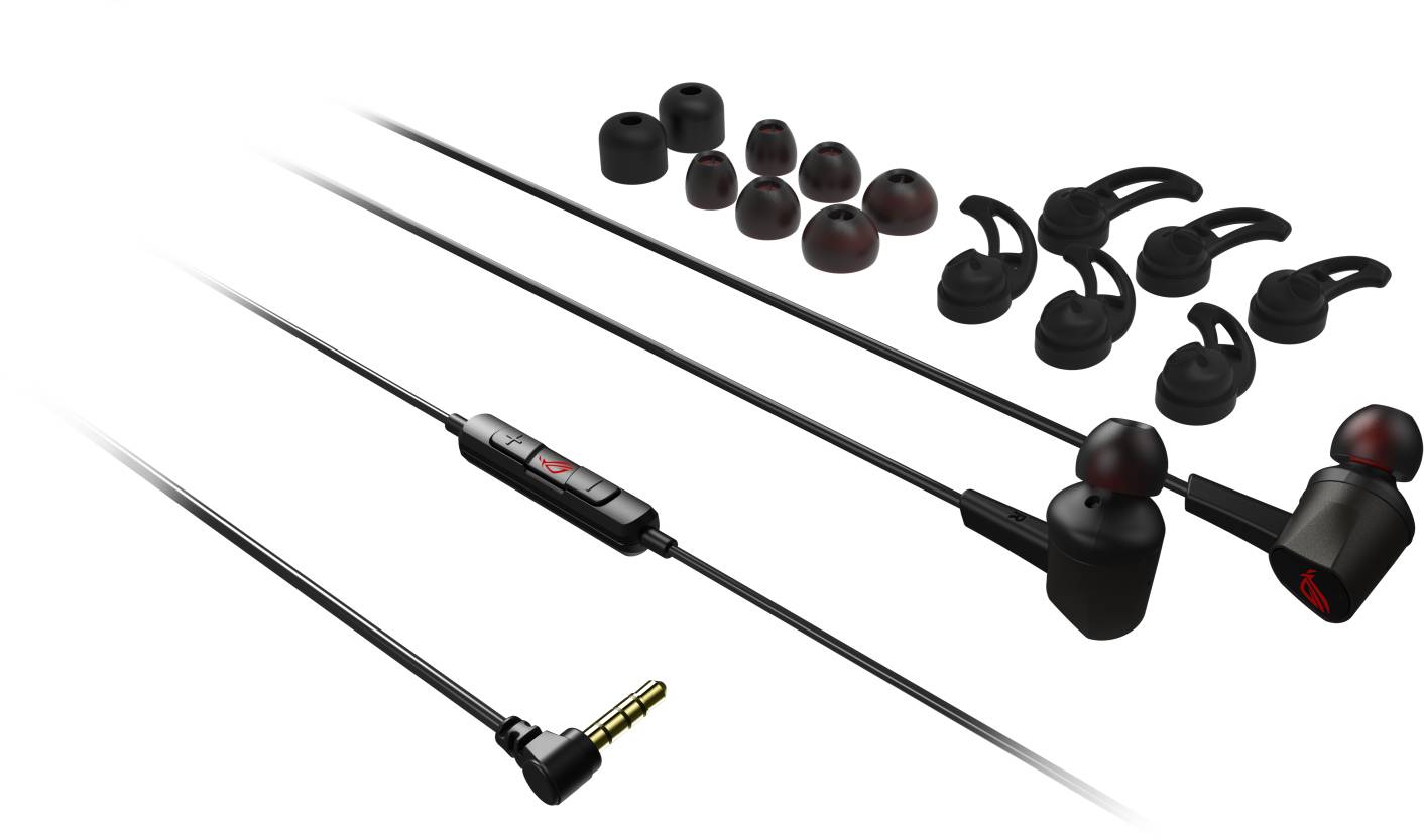 ROG Cetra II Core n-ear gaming headphones with liquid silicone rubber (LSR) drivers and a 3.5 mm connector compatible with PCs, laptops, mobile phones, ROG Phone 5, PlayStation 5, Xbox Series X/S and Nintendo Switch