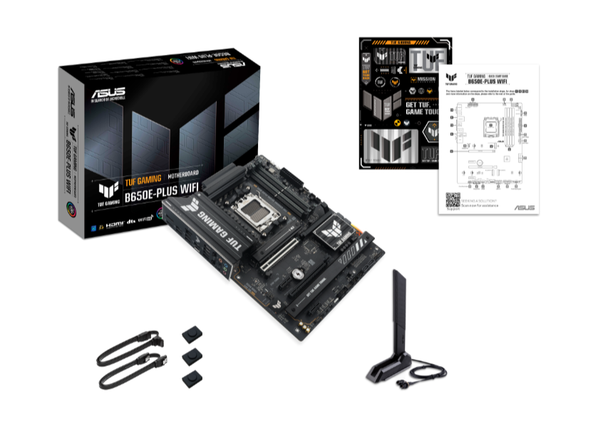 ASUS TUF GAMING B650E-PLUS WIFI takes all the essential elements of the latest AM5 Socket for AMD Ryzen™ Desktop Processors and combines them with game-ready features and proven durability. Engineered with military-grade components, an upgraded power solution and a comprehensive cooling system, this motherboard goes beyond expectations with rock-solid and stable performance for marathon gaming. TUF GAMING motherboards also undergo rigorous endurance testing to ensure that they can handle conditions where others may fail. Aesthetically, this model incorporates rugged off-black and geometric design elements to reflect the dependability and stability that defines the TUF GAMING series. This platform delivers the power and connectivity that advanced AI PC applications demand.