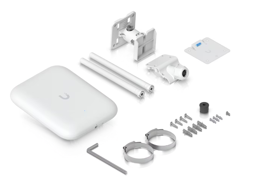 All-weather IP67 WiFi 7 AP with 6 spatial streams, integrated directional super antenna, and articulation mounting bracket.
