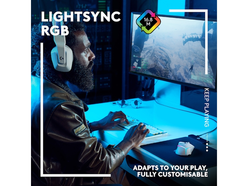 Logitech G502 X Plus Lightspeed Wireless, 25600 dpi, 13 programmerbara knappar, HERO 25K-sensor, RGB - Vit/Premium