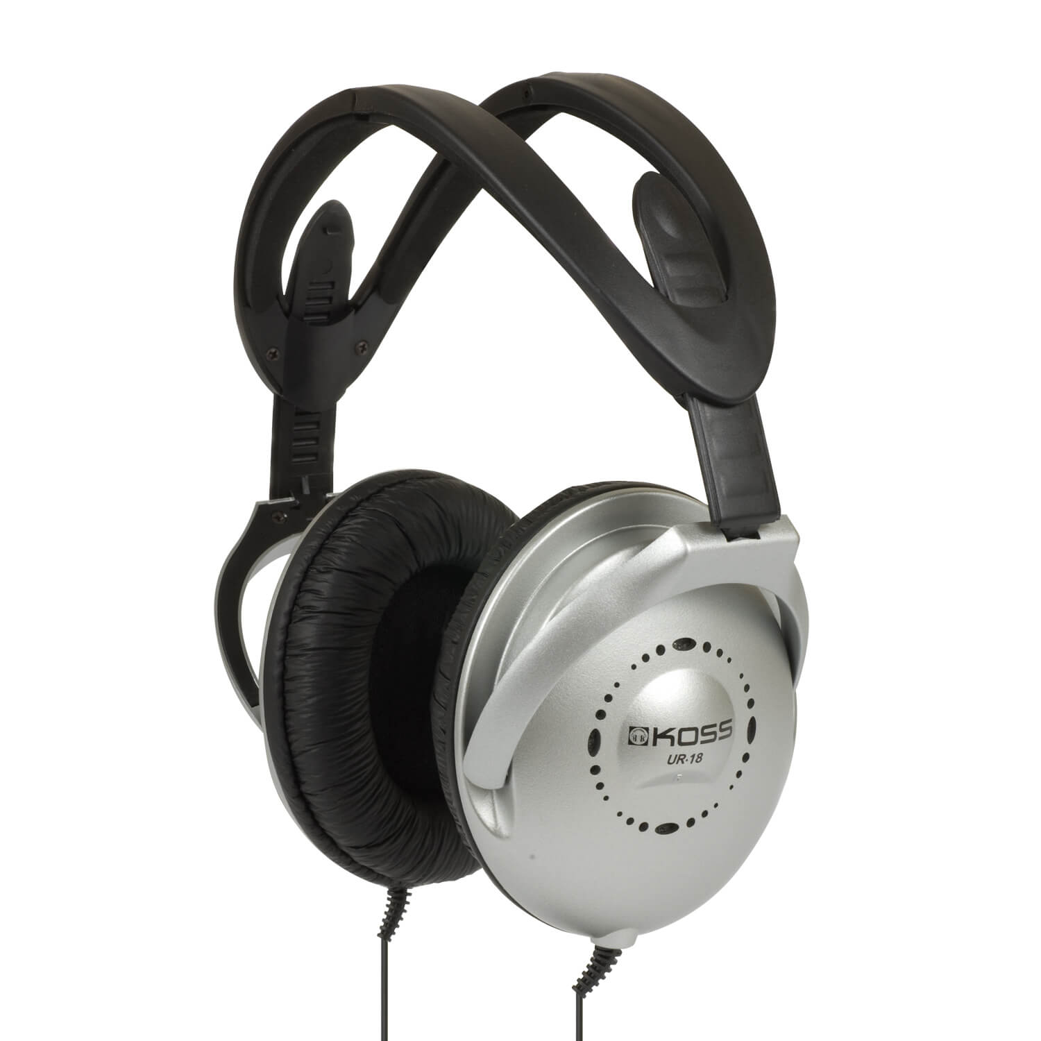 Portabel hopfällbar Hifi-hörlur med slutna öronkuddar i konstläder, för maximal isolering och djup bas. Koss UR18-hörluren erbjuder stor komfort i form av ett justerbart huvudband som rymmer nästan alla huvudstorlekar och former för en anpassad passform.