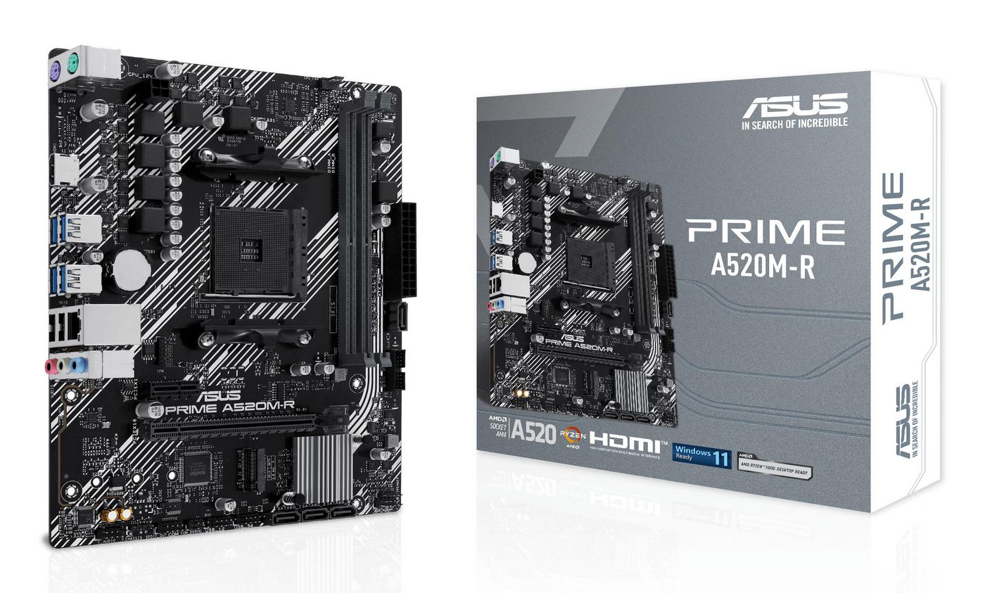 Asus PRIME A520M-R, AMD Socket AM4, A520, MicroATX, 2xDDR4, PCI Express, M.2 + SATA3 RAID, HDMI, USB 3.1, GigaLAN