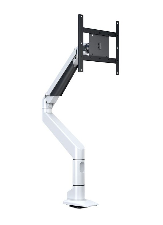 The M VESA Gas Lift XL HD Single White is made out of a durable aluminum construction and uses a gas driven suspension technique. This makes the screen "float" and it can then be moved with near zero effort. Sleek and streamlined, the M VESA Gas Lift XL Single White HD frees up space and allows positioning of your display for greater productivity. With a maxload of up to 18kg even very big monitors can be used. The height clearance is 615 mm above the desk. Rotation function is not used for widescreen or ultrawide screen monitors. The unique counterbalance gas technology provides smooth adjustment in any direction. Easy move the screen from landscape to portrait position or move the screen close to the desk, high up, matching almost any wanted working position imaginable.