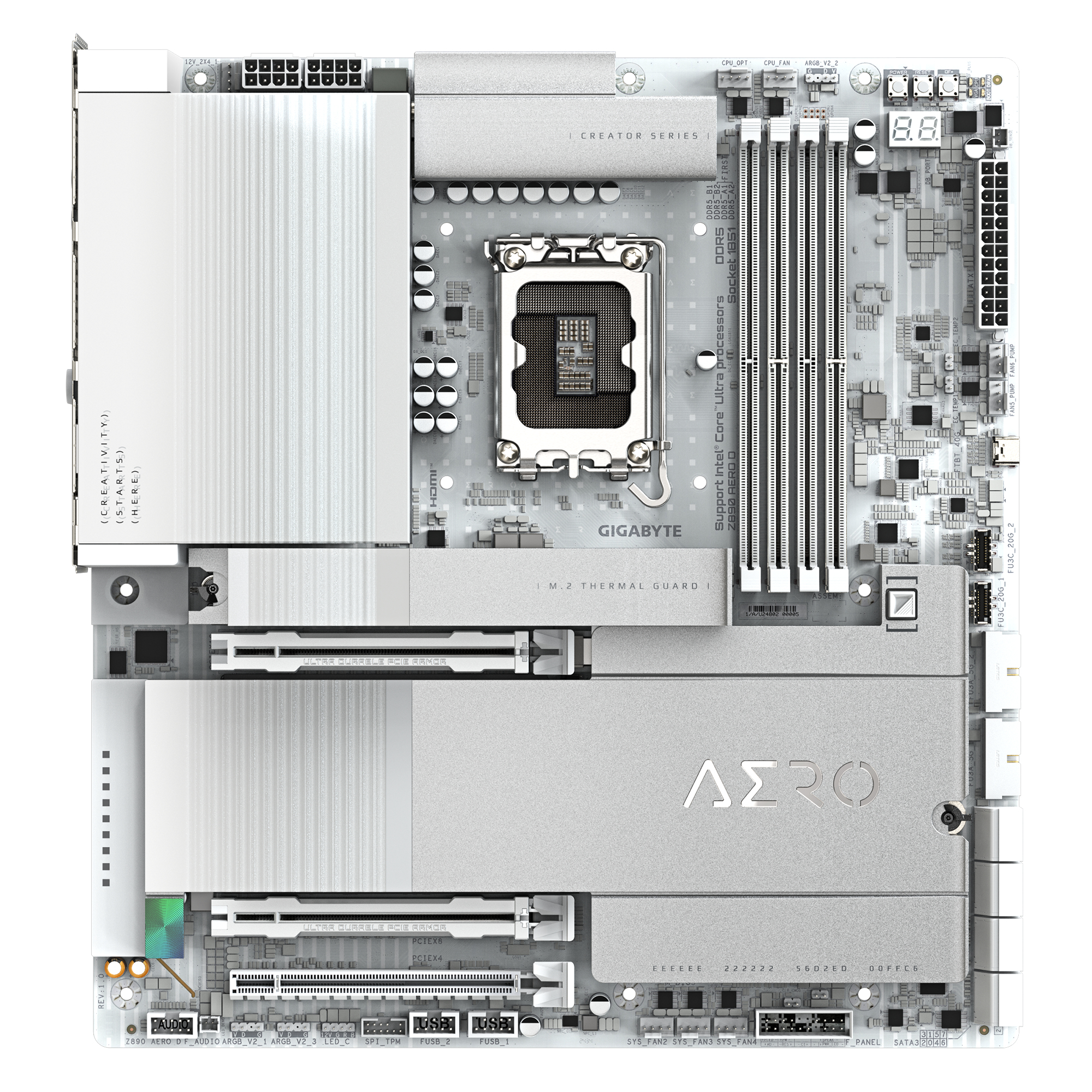 Gigabyte Z890 AERO D, Intel LGA1851, ATX, 2xPCI Express, 4xDDR5, 4xM.2 + SATA3 RAID, HDMI/2xTB5, 2x10GbE LAN, WiFi 7, Bluetooth 5.4, RGB Fusion