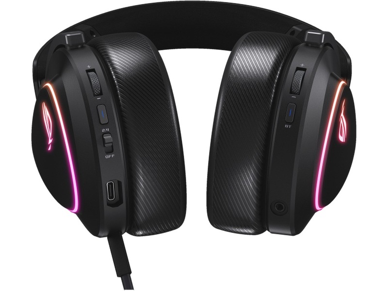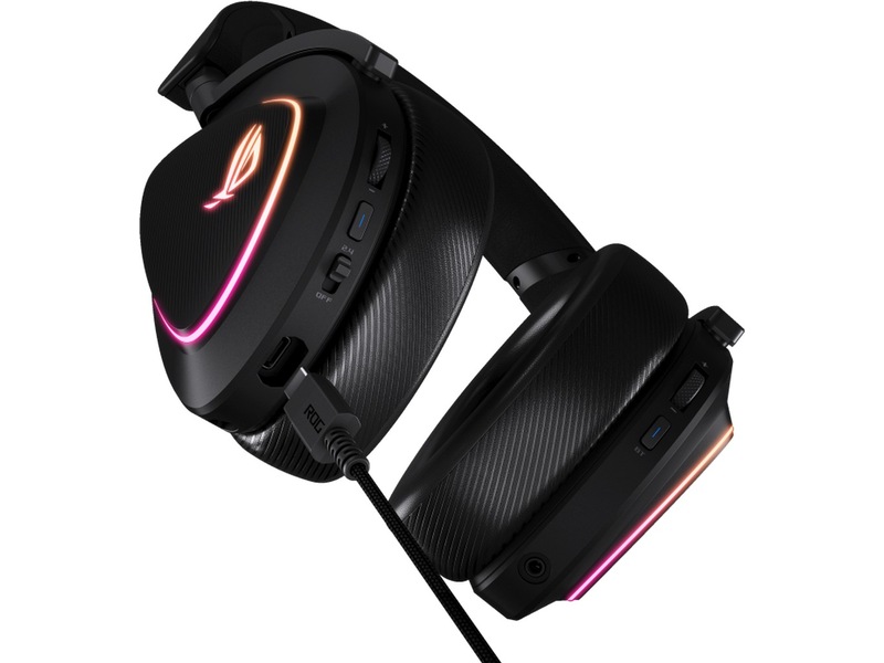 Tri-mode wireless gaming headset with ROG SpeedNova, 50 mm titanium-plated diaphragm drivers, and refined wireless sound signature, 10 mm super-wideband boom microphone, DualFlow Audio, up to 110-hour battery life, lightweight 318-g design, plus ASUS Aura Sync RGB lighting