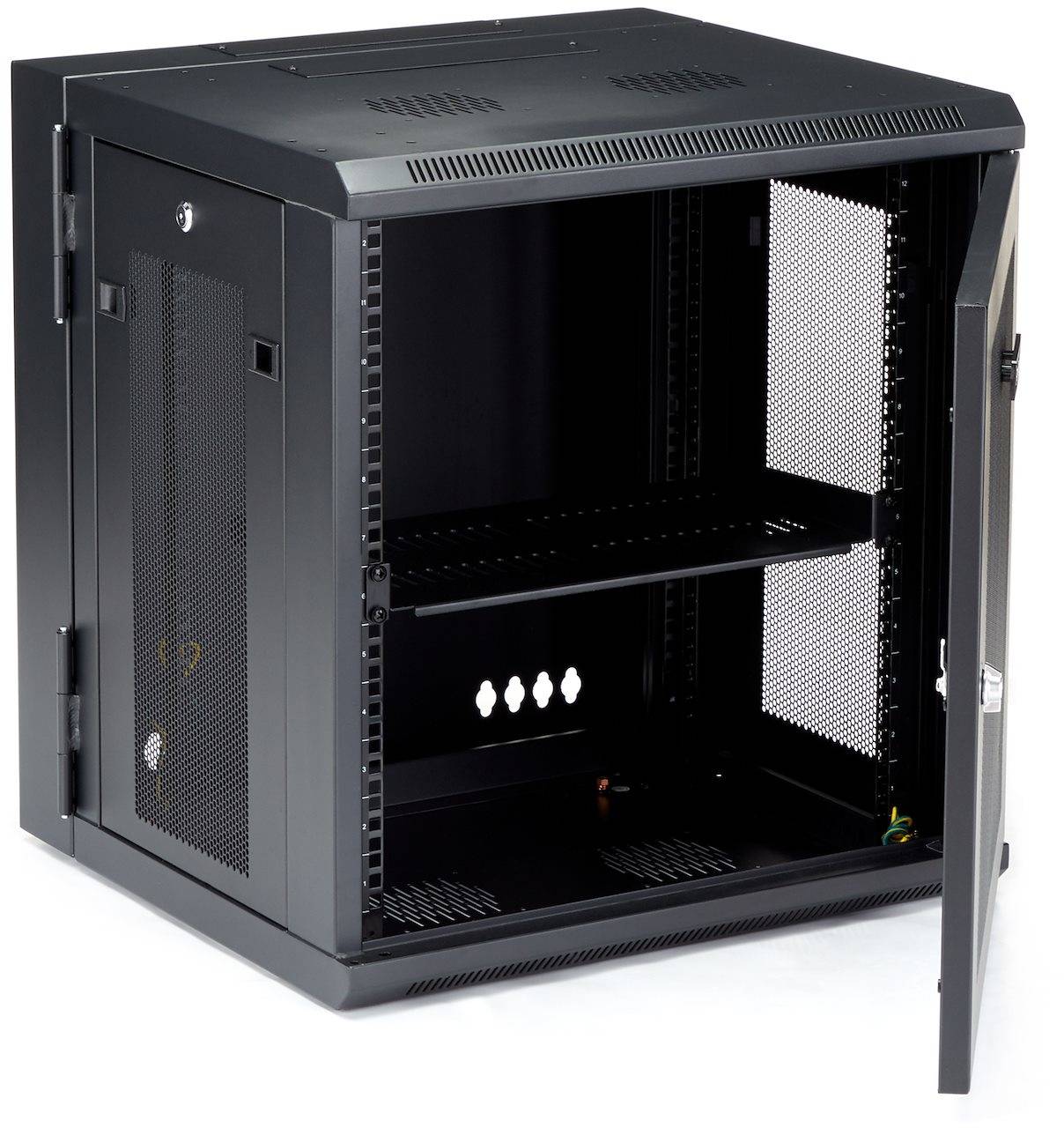 19" Skåp StarTech.com 12U, 610x550x640mm, stående eller väggmonterat, gångjärnsupphängning - Svart