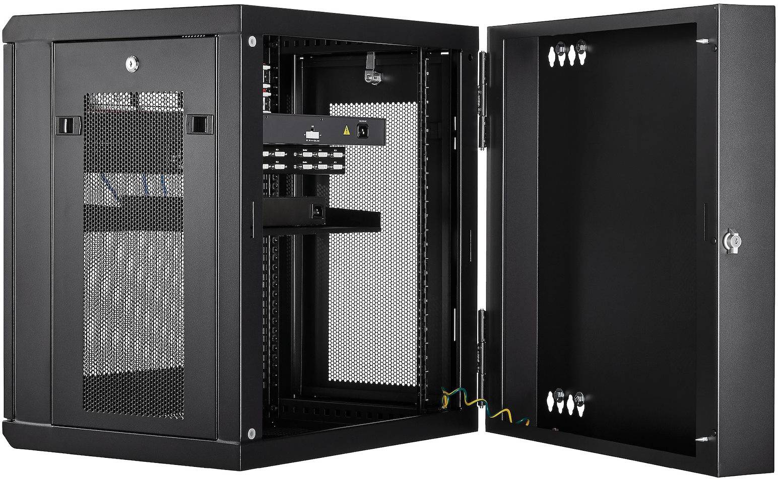 19" Skåp StarTech.com 12U, 610x655x640mm, stående eller väggmonterat, gångjärnsupphängning - Svart