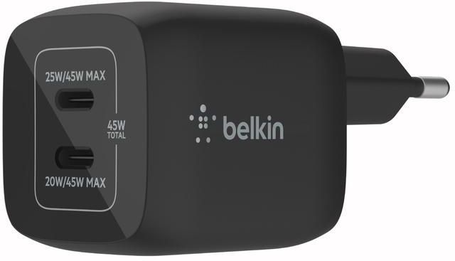 AC-adapter Belkin Boost Charge Pro 45W, Dual USB-C GaN Wall Charger med PPS - Svart