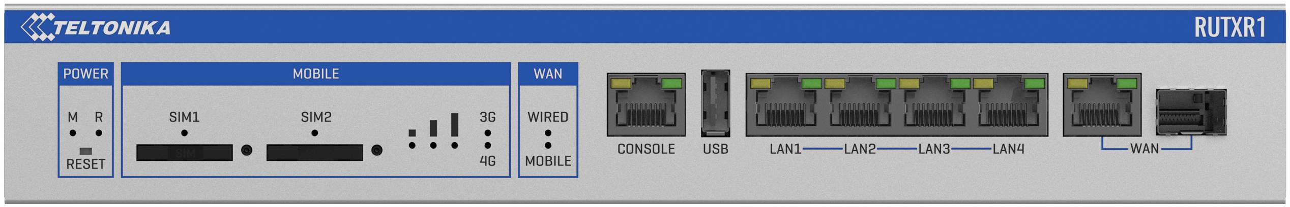 Trådlös 4G-router Teltonika RUTXR1, WiFi 5 Wave2, SFP, Bluetooth, Dual SIM, rackmonteringsbar