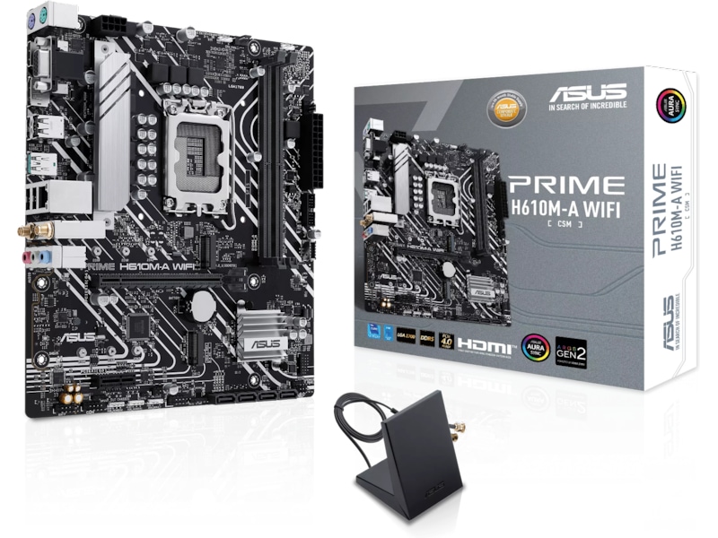 Asus Prime H610M-A WIFI, Intel LGA1700, PCI Express, MicroATX, 2xDDR5, M.2 + SATA3, VGA/HDMI/DP, USB 3.2, GigaLAN, WiFi 5, Bluetooth 5.0, Aura Sync RGB