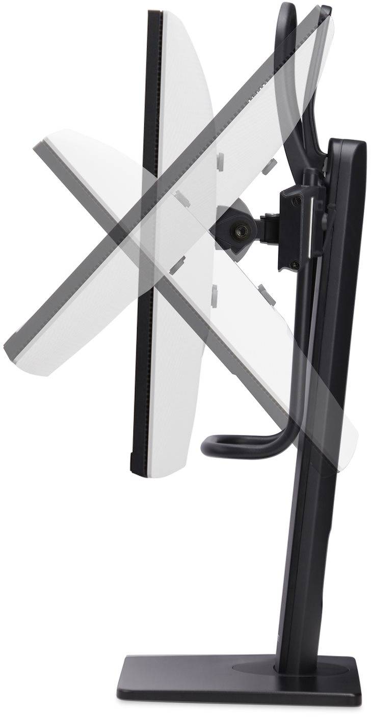 • SYNKRONISERAD HÖJDJUSTERING: Handtag upptill och nedtill för kontrollerad höjdjustering från 245 till 400 mm. Verktygslös justering av +/-40° svängning vid basen, VESA +/-45° lutning, +/-40° svängning och 360° skärmrotation. Justering av bildskärm längs tvärstången