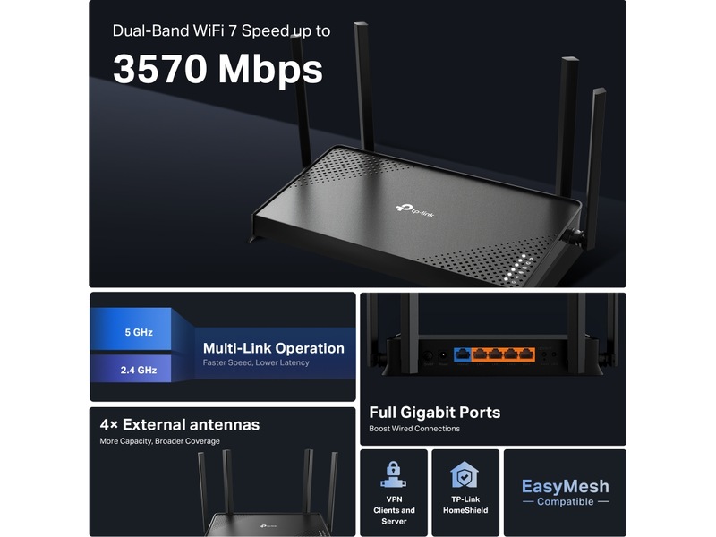 • 3.6 Gbps Dual-Band WiFi 7: BE3600 Dual-Band WiFi delivers WiFi speeds up to 3.6 Gbps.†‡