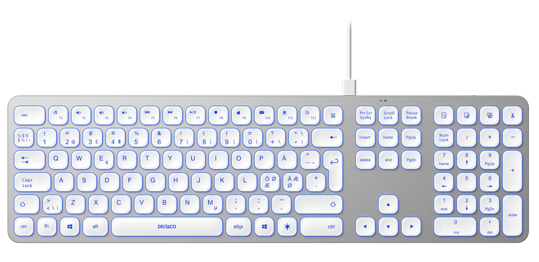 Uppgradera din skrivupplevelse med det eleganta tangentbordet designat för stil, funktion och komfort. Den smala och eleganta aluminiumkonstruktionen ger både ett modernt och hållbart intryck, medan den bakgrundsbelysta funktionaliteten gör det enkelt att skriva i alla ljusförhållanden.