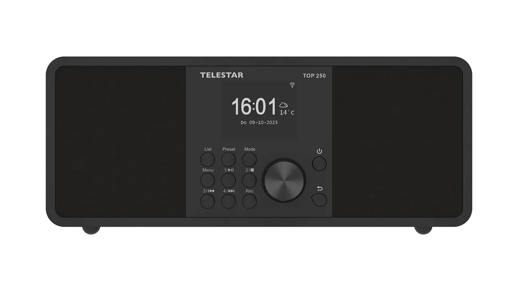 Den kompakta stereo digitalradion med WiFi ger tillgång till otaliga internetradiostationer och passar perfekt in i alla rum tack vare sin utrymmesbesparande design. Musikälskare drar nytta av trådlös ljudströmning via Bluetooth 5.3 eller möjligheten att spela musik direkt från ett USB-minne. Med den praktiska Bluetooth-sändnings- och mottagningsfunktionen kan radion användas som mottagare för externa enheter eller som sändare för trådlösa högtalare och hörlurar. Det individuellt programmerbara nattläget säkerställer trevlig användning genom att automatiskt stänga av och slå på displayen igen i definierade tidsfönster. Upplevelsen avrundas av två inbyggda högtalare, var och en med en uteffekt på 10 watt musikeffekt, samt möjlighet att spela in radioprogram eller musik direkt till en USB-lagringsenhet.