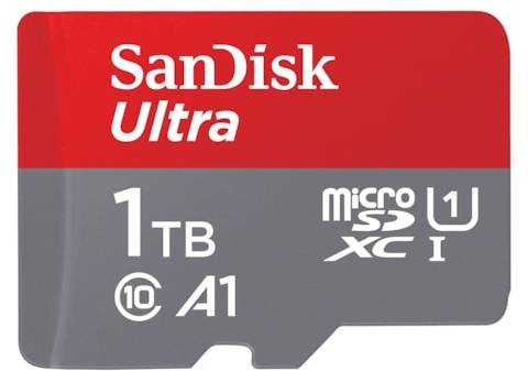 Micro Secure Digital SDXC 1 TB Sandisk Ultra, 120 MB/sek läs, Class 10, A1, UHS-I U1, inkl. SD-adapter