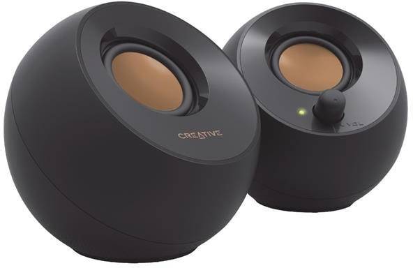 Den klotformade Creative Pebble-högtalaren, inspirerad av japanska stenträdgårdar, är en smidig och elegant 2.0-högtalare som passar perfekt i varje hem och på varje kontor. Den har en 45° förhöjd ljudbild för förbättrad ljudprojektion och drivs av en USB-sladd för problemfri musikunderhållning. Ljud rakt in i dina öronCreative Pebble har ett 45° förhöjt specialanpassat fjärrområdesdrivelement som riktar ljudet till dina öron och placerar dig på den bästa punkten för en fantastisk ljudupplevelse. Liten men starkDen lilla Creative Pebble har inbyggda passiva element och en imponerande sammanlagd RMS på 4,4W, och den ger ett balanserat ljud med djup, omslutande och kristallklar detaljrikedom. Anslut dina enheter via 3,5 mm-kontakten och förbered dig på en överraskning. Bekvämlighet inom räckhållJustera volymen snabbt med Creat
