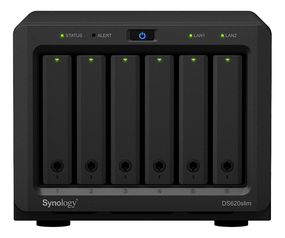 DS620slim är en mini-NAS med 6 fack och en snygg chassidesign som passar perfekt på moderna arbetsplatser och lägenheter. DS620slim har funktioner för nästan omedelbar snapshotteknik och 4K-videokonvertering i realtid och är en mångsidig filhanteringslösning som uppfyller proffsens behov av avancerat dataskydd och högkvalitativ mediedirektuppspelning.